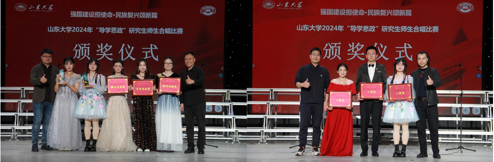 11月2日晚,山东大学2024年“导学思政”研究生师生合唱比赛(威海赛区)于艺术学院音乐厅正式举行。伟德BETVLCTOR1946官网以一曲《走向复兴》精彩亮相,并以优秀表现获得二等奖及导学思政奖。参与此次合唱的人员有常务副院长周新顺、党委副书记周玉宏、副院长尹海良等10名教师代表以及50名研究生代表。