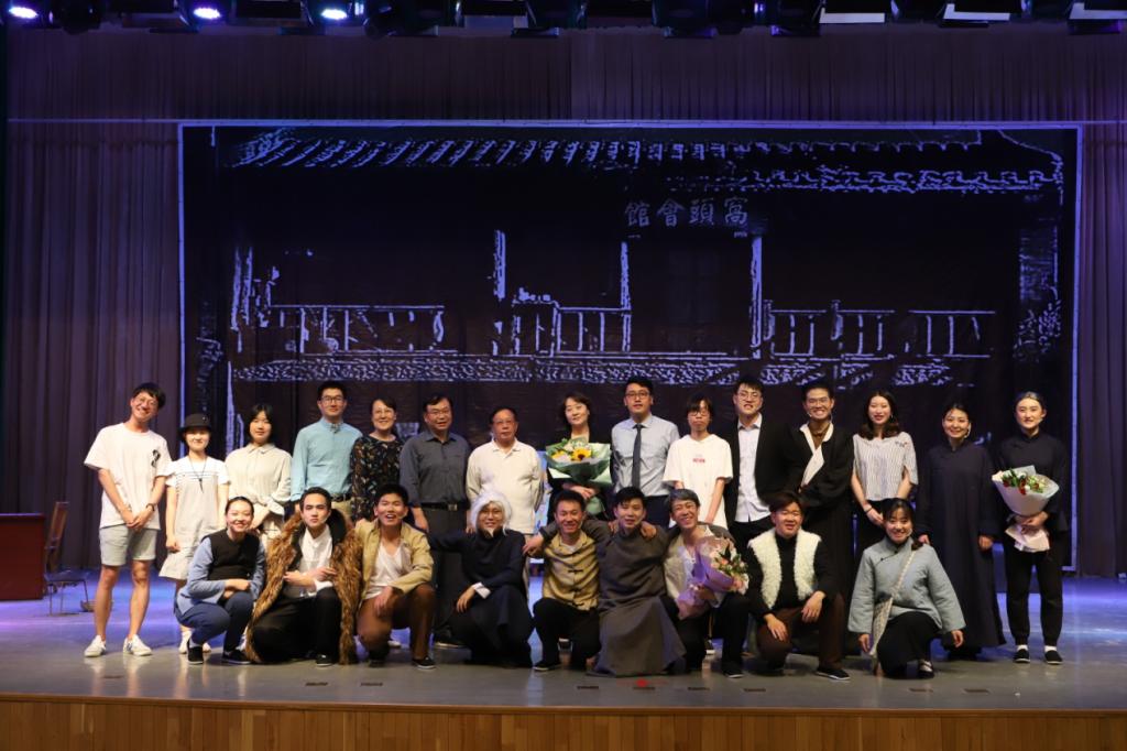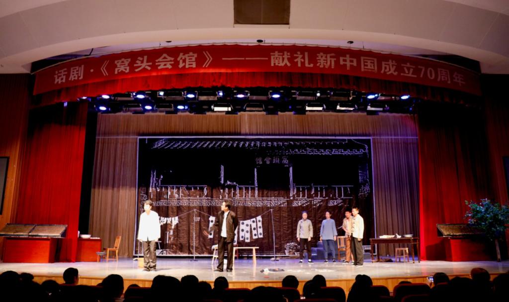 本站讯 6月1日晚,我院钟吕剧社于知行会堂演出话剧《窝头会馆》。我院院长张红军、党委书记于培丽、党委副书记周玉宏、原中文系主任兼钟吕剧社创始人张宗正担任本次活动嘉宾。近千名老师和同学前往观看。