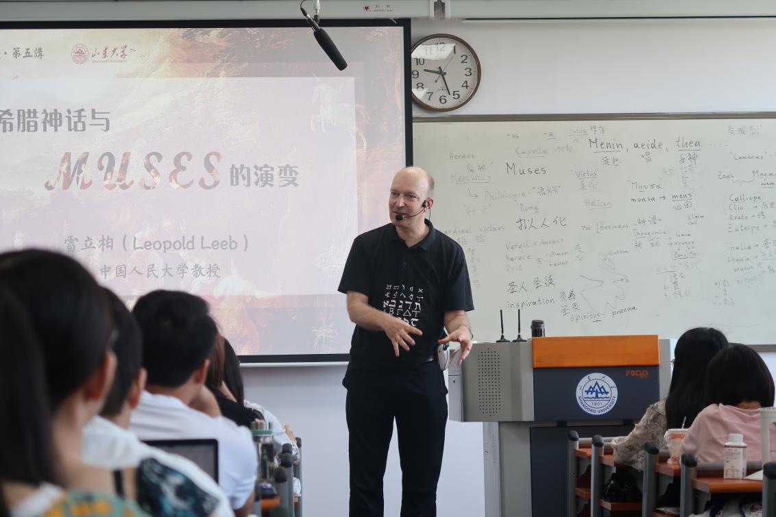 雷立柏教授的讲授以词源为切入点,通过拉丁语、古希伯来语、古希腊语、英语等语言之间的对照解读,以具有典型意义、但以往在中国语境的外国文学史讲述中却常常被忽视的文学经典为例,不仅勾勒出了缪斯形象的演变轨迹,更是展示出了西方古典文化与文学的别样魅力。雷立柏教授所带来的绝不止是知识的拓展和补遗,更为重要的是语文学的学术研究方法的启示以及跨文化、跨语际的自觉思考与研究视野,这也正是“年轻”的中国现当代文学研究乃至中国的外国文学研究、比较文学研究尤为需要学习与借鉴之处。