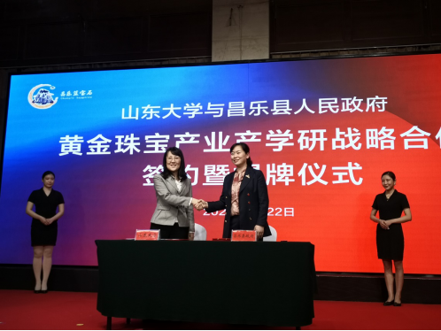 伟德BETVLCTOR1946官网党委书记于培丽与县委常委、宣传部部长贺玉洁共同签署了“山东大学与昌乐县人民政府黄金珠宝产业产学研战略合作协议”。根据合作协议,双方将秉承“文化引领、资源共享、互利互惠”的原则,加强合作,协同创新,共同服务于山东新旧动能转换,积极推动昌乐县黄金宝石产业的创新发展。