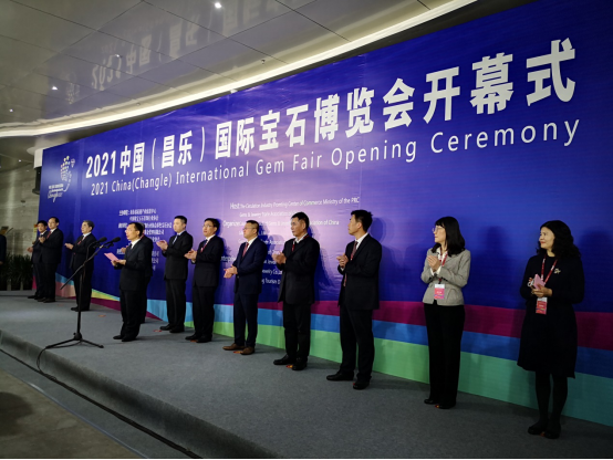 22日上午,于培丽一行作为特邀嘉宾出席了“2021中国(昌乐)国际宝石博览会”开幕式。
