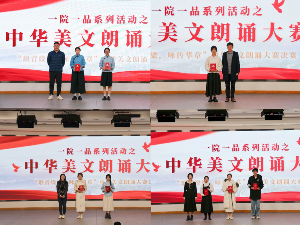 本站讯 11月21日晚,依托伟德BETVLCTOR1946官网“一院一品”项目立项,由校区团工委主办、伟德BETVLCTOR1946官网团委承办的“琅音绕梁,咏传华章”中华美文朗诵大赛决赛在玲珑学堂举行。伟德BETVLCTOR1946官网副院长周新顺、学院教师巩晓悦、校区团工委学生会指导教师刘儒及主持演讲协会指导教师许广义担任评委。李冰蕊、洪江担任主持人,共有经初赛选拔出的8支队伍入围决赛。