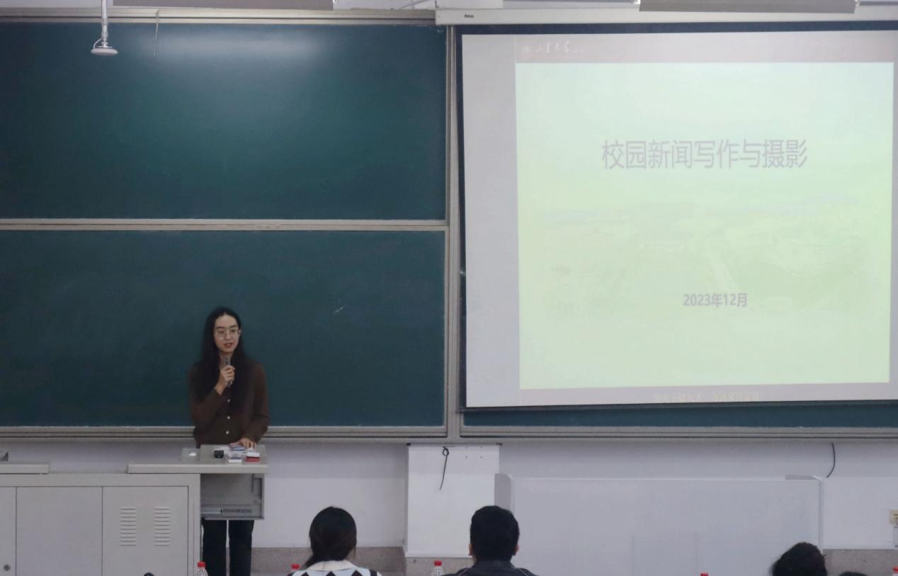 谈及新闻摄影方面,戚伟良表示,好照片是主题鲜明、主体突出、画面简洁的。他针对光圈、快门、焦距、曝光补偿等摄影术语作了介绍,并阐述了几种照相机设置的曝光模式及运用场景。结合实际工作经验,戚伟良进一步讲解了拍摄前应做好的准备,对校园内几种常见摄影场合分别予以指导。戚伟良勉励同学们在今后的宣传思想文化工作中要坚持“埋头干、抬头看、回头想”的工作理念,多看、多听、多写、多观察、多思考,共同为学院宣传思想文化工作高质量发展贡献力量。