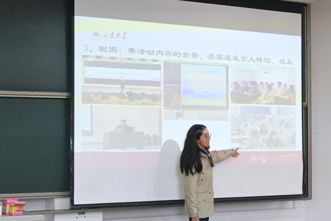 白孟灵根据学生撰写文字材料过程中出现的问题,从通讯稿规范、EXCEL规范、WORD规范、PPT文件规范及审核问题5个方面展开。她提出,通讯稿应从活动基本情况、活动内容和总结升华三个板块进行撰写,找准稿件定位,使用恰当的人称和配图,标出图文作者,并着重讲述了总结稿的写法。对于EXCEL、WORD、PPT等办公软件的使用,白孟灵指出学生工作中出现的常见错误和需要重视的问题,并介绍了相应的操作规范和方法,要求学生骨干使用规范的格式,通过恰当运用办公软件提升自己的工作效率。白孟灵还强调了时效性问题,指出稿件应在格式统一、排版清晰的基础上,及时交由对应的负责老师审核。