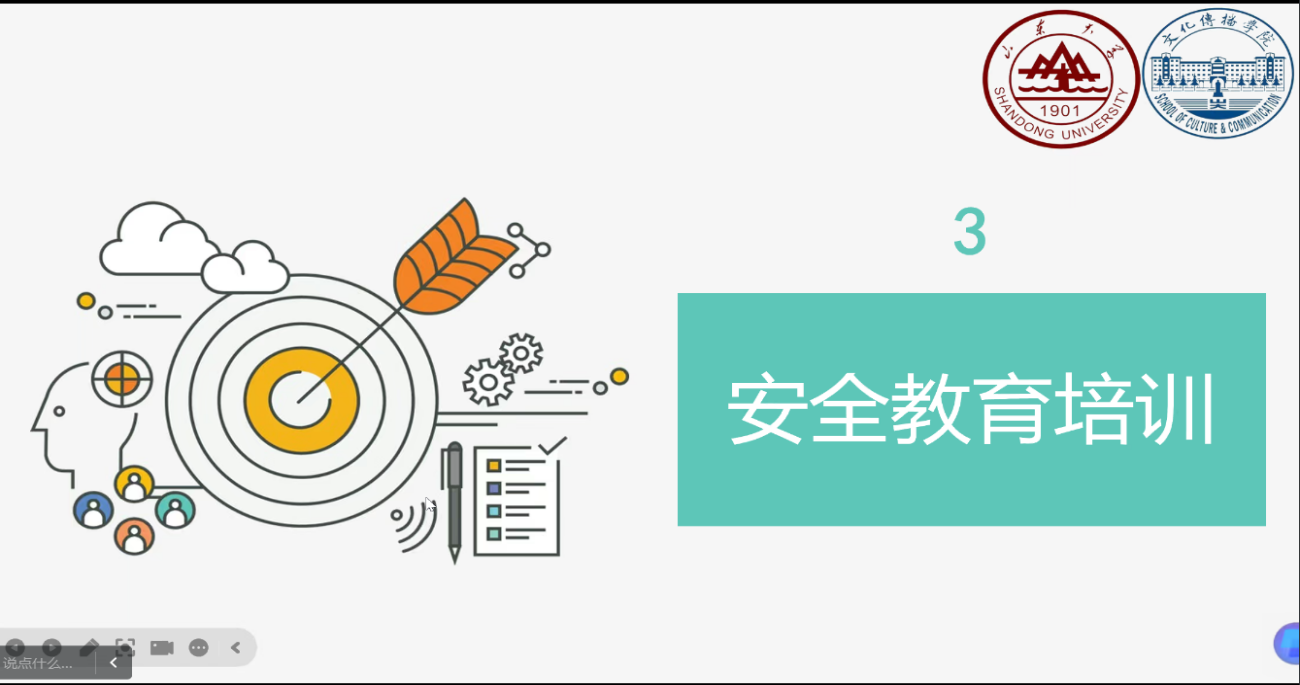 本次会议分为社会实践基本情况概述、经验分享、安全培训和问题答疑四个环节。宁权首先简要介绍学院社会实践的总体概况和基本流程。“腔圆字正,四海同音”调研团队队长马诗语结合自身经历,交流实践日程安排、报告撰写及答辩等方面的经验。“爱的三角”支教团队长李子硕梳理了近年来团队的选题变化,提出结合国家号召、时政热点细化选题的建议。在安全培训环节,朱慧敏针对社会实践可能面临的安全问题进行了详细的讲解,并解答实践投稿宣传、实践过程记录、实践初心与实践目标等问题。