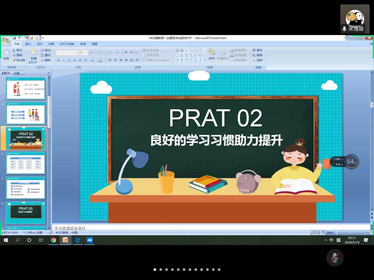 本站讯 5月18日,伟德BETVLCTOR1946官网2018级汉语国际教育线上班会在腾讯会议举行。本次班会的主题为“居家分享会”,18级汉语国际教育班长刘晓琳、团支书宋海萌担任主讲人,2018级汉语国际教育全体同学参与班会。
