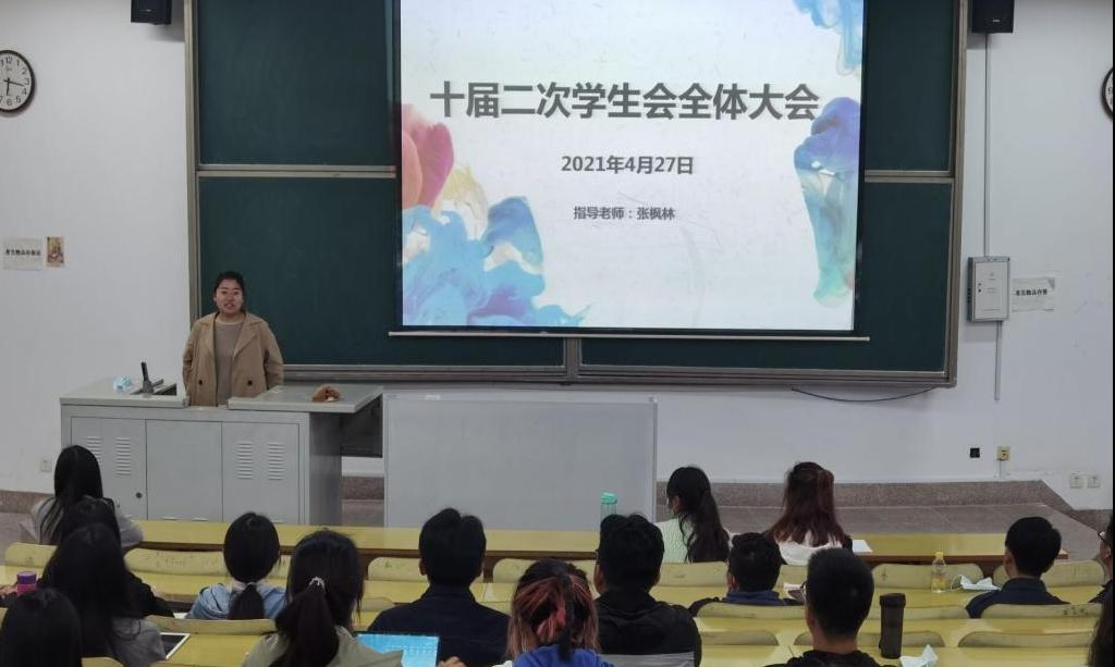 本站讯 4月27日晚,伟德BETVLCTOR1946官网十届二次学生会全体大会于商学院556室举行,主席团刘晓琳主持会议,指导教师张枫林出席会议。
