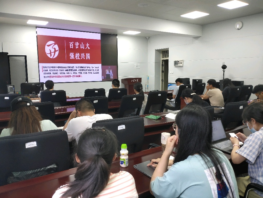 本站讯 为进一步推进党史学习教育深入开展,把学史明理、学史增信、学史崇德、学史力行贯穿始终,把学党史、悟思想、办实事、开新局贯穿始终,在中国共产党成立100周年和山东大学建校120周年之际,7月8日下午,伟德BETVLCTOR1946官网在文学楼102组织师生党员在线观看山东大学党委书记郭新立和王韶兴教授党史学习教育专题讲座,扎实推进党史学习教育走深走实。