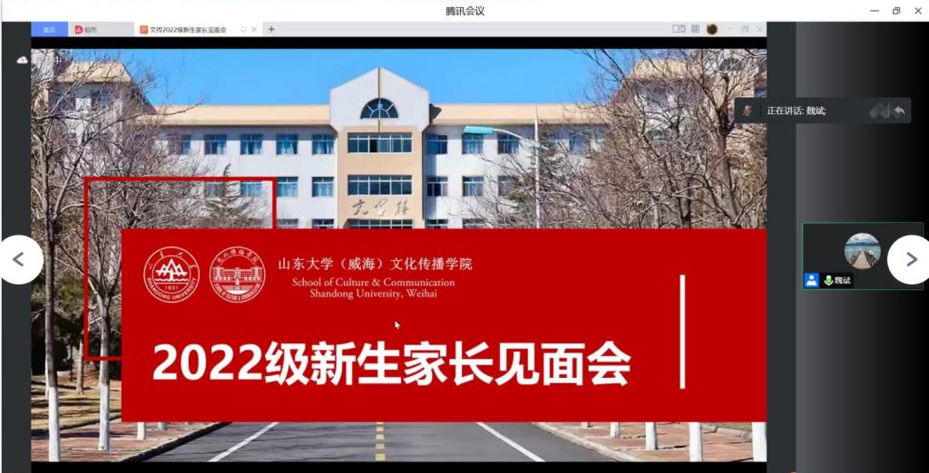 张红军介绍了山东大学、威海校区的基本情况和伟德BETVLCTOR1946官网的历史沿革,重点从学科建设、人才培养、科研及社会服务等方面介绍了学院的发展成绩和建设成果。副院长周新顺介绍了本科教育教学有关情况,对汉语言文学和新闻学的专业特点、学科优势、课程体系、毕业去向和就业前景等进行了详细解读。党委副书记周玉宏围绕校园学习生活管理服务和高质量完成立德树人根本任务等方面,对学院开展的各类学团工作进行了介绍,重点说明了家长普遍关心的学生报到入学、课业成绩、评奖评优、扶困助学等方面的问题。魏斌在主持会议时感谢了新生及家长对学校和学院的认可和信任,指出本次见面会正式拉开了同学们大学学习生活的序幕,今后学院和家长、同学们面对面沟通交流的机会还很多,学生和家长们的个性化问题或诉求,后续可以通过各种渠道各种方式,和学院的老师们沟通解决。学院全体教职员工,尤其是学生工作队伍,一定会全力以赴、竭尽所能,为同学们的成长成才服好务、护好航,让家长们放心。