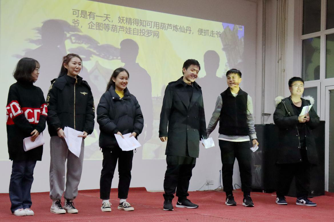 本次活动分为节目表演、趣味游戏和抽奖三个环节。在节目表演环节中,综合事务部以趣味舞蹈《咋了爸爸》开场,活跃了全场的气氛。紧接着社会实践部同学带来了团体舞蹈《宠爱》,展现了大学生的青春活力。学业发展部的配音节目《非诚勿扰》,用幽默的方式糅合了时下流行的“凡尔赛文学”元素。来自文艺体育部的同学,带来了“性转”版话剧《白雪公主》,引得台下爆笑连连。生活权益部齐唱《好汉歌》,表达了大家团结一心的精神。青年志愿者联合会的歌曲合唱节目《明天你好》朝气向上,全体同学伴着歌声舞动荧光棒,气氛温馨。在趣味游戏环节,“你比我猜”考验同学们的默契度,“真假难辨”和“谁不识数”则考验了同学们临场反应能力,“一块五毛”游戏更是将现场气氛推向高潮。活动结尾进行了趣味抽奖和大合影。