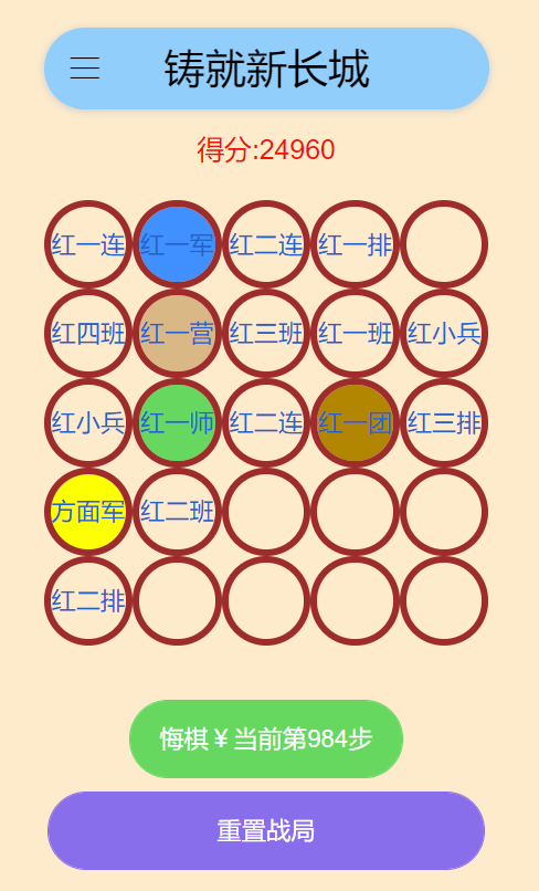 团队成员通过目前市面上的2048小游戏获得开发灵感,设计出一款通过智力思考,上下左右滑动屏幕,逐渐将红小兵,通过同类合并的优化方法,一步一步地合成为红一班、红一排、红一连、红一营、红一团......红一军、军团、方面军,直至合成出来中国共产党领导下的人民解放军。本游戏采用HTML5+JavaScript作为智力游戏的开发语言,并从当先较为成熟的开发工具中选择了HBuilder进行,旨在以这种趣味化方式引起人们的学习兴趣。